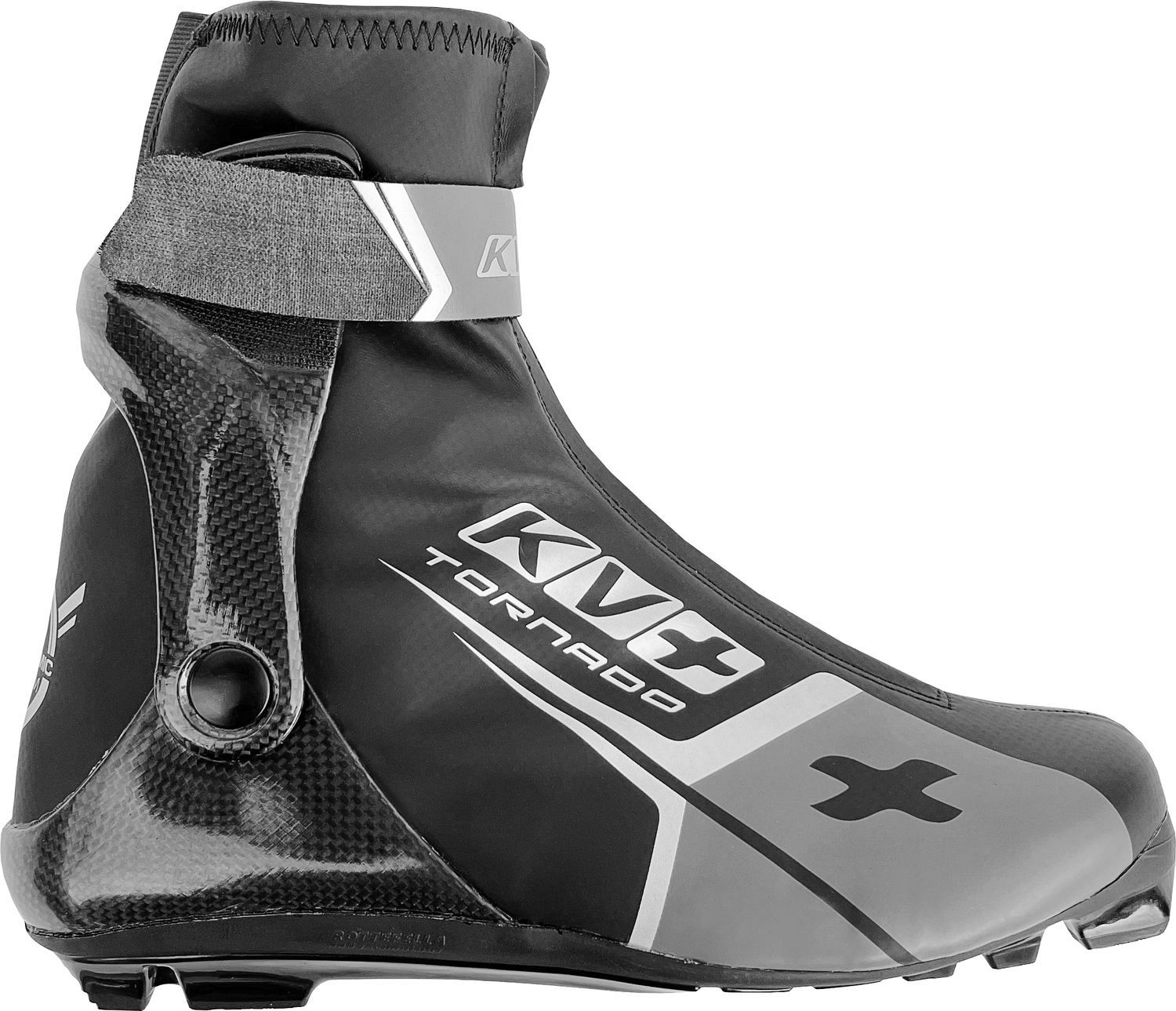 Ботинки для беговых лыж KV+ Shoes Tornado Skate. Стиль катания: Коньковый. Особенности: гоночная колодка, элитная манжета, пластиковая пятка с карбоновым стабилизирующим чехлом, встроенная эластичная вставка, система шнуровки под углом 45°, шнуровка с петлей TX, анатомическая стелька, жесткая гибкость.