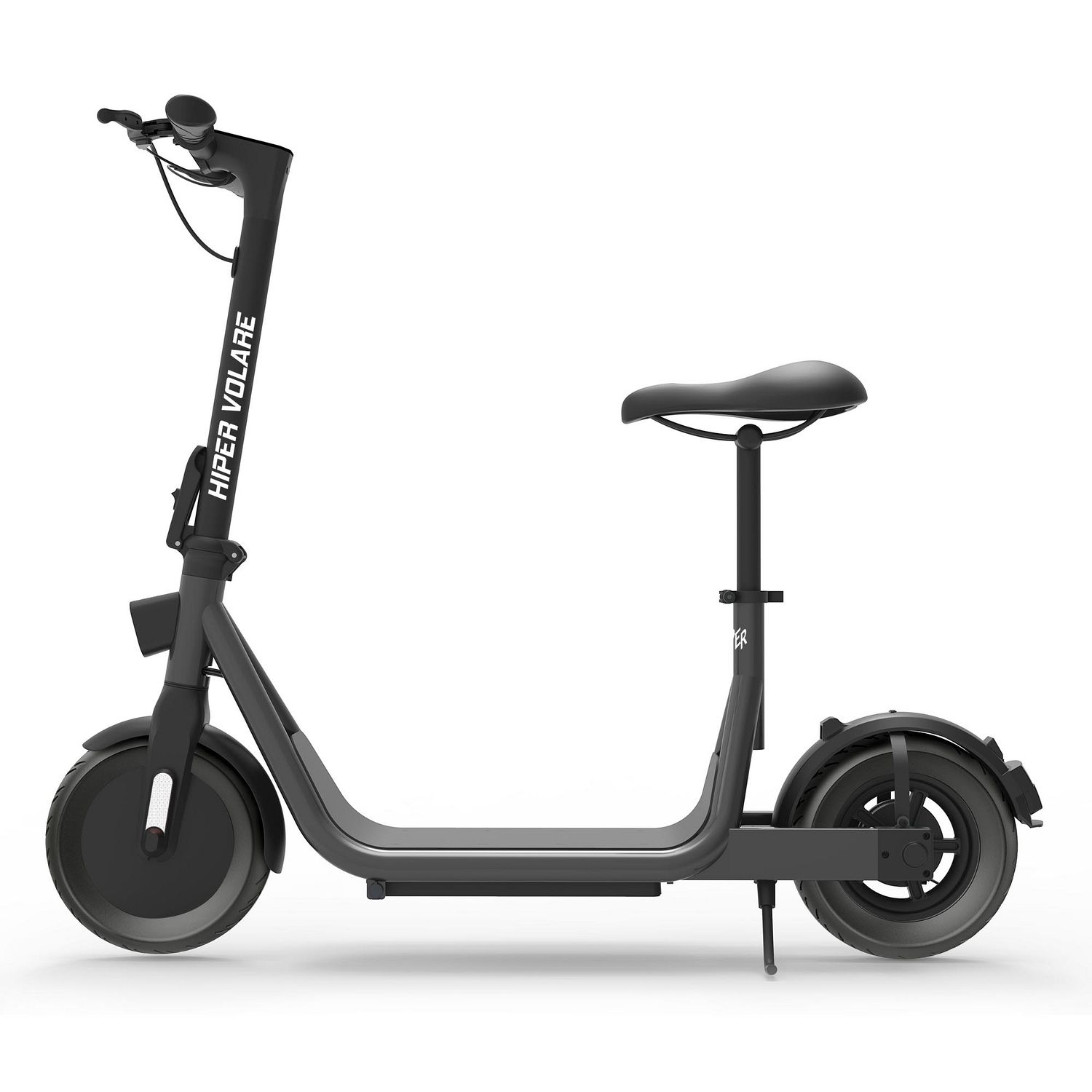 HIPER Volare V1 – это элегантный электросамокат с передним приводом, оборудованный сиденьем. Он создан для катания и прогулок по городу, поездок на работу, по магазинам.