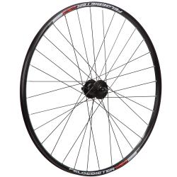 Переднее колесо 29 дюймов. Двойной алюминиевый пистонированный обод под 32 спицы. Алюминиевая втулка на эксцентрике Shimano Deore HB-M475 с насыпными подшипниками.
