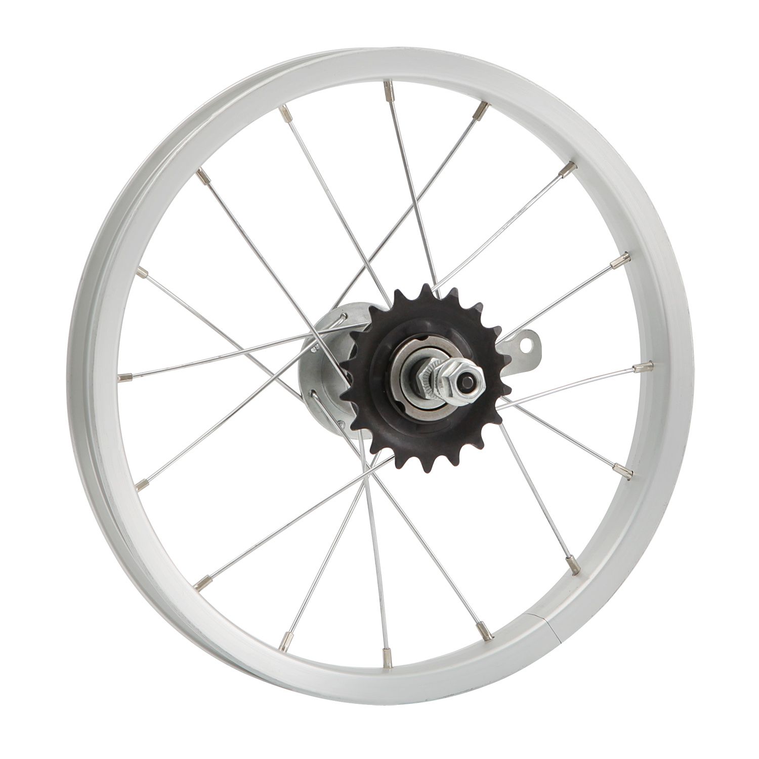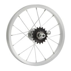 Колесо заднее 14 дюймов с одинарным алюминиевым ободом на 16 спиц с втулкой под гайку.