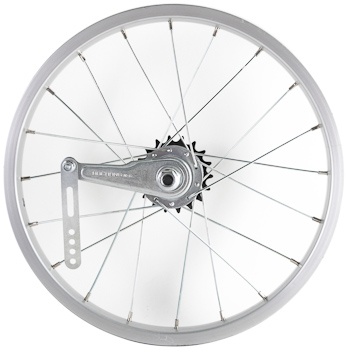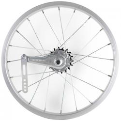 Колесо 16" заднее в сборе(без резины) с одинарным алюминиевым ободом на 20 спиц со втулкой под гайку.