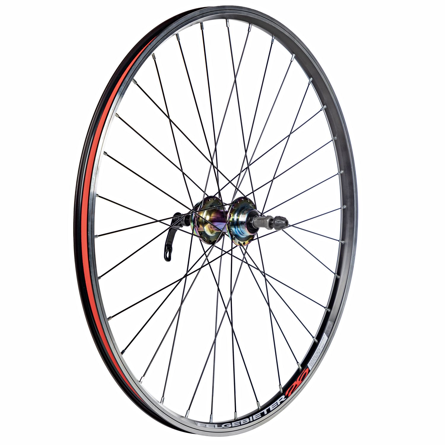 Колесо 26 заднее, двустенный обод на 32 отверстия, втулка STG B07R неохром, алюминиевая, под диск 6 болтов, под трещотку, эксцентрик, промышленные подшипники.