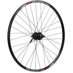 Заднее колесо 29 дюймов с двойным пистонированным ободом на 32 спицы. Алюминиевая втулка Shimano Deore FH-M525A с насыпными подшипниками под кассету 11 скоростей. Крепление на эксцентрик.