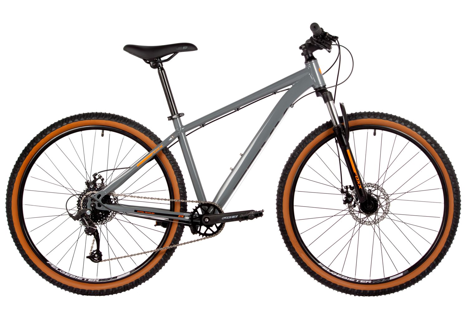 – Амортизационная вилка Foxxshox. Смягчает неровности, ход 50 мм, алюминиевая корона.