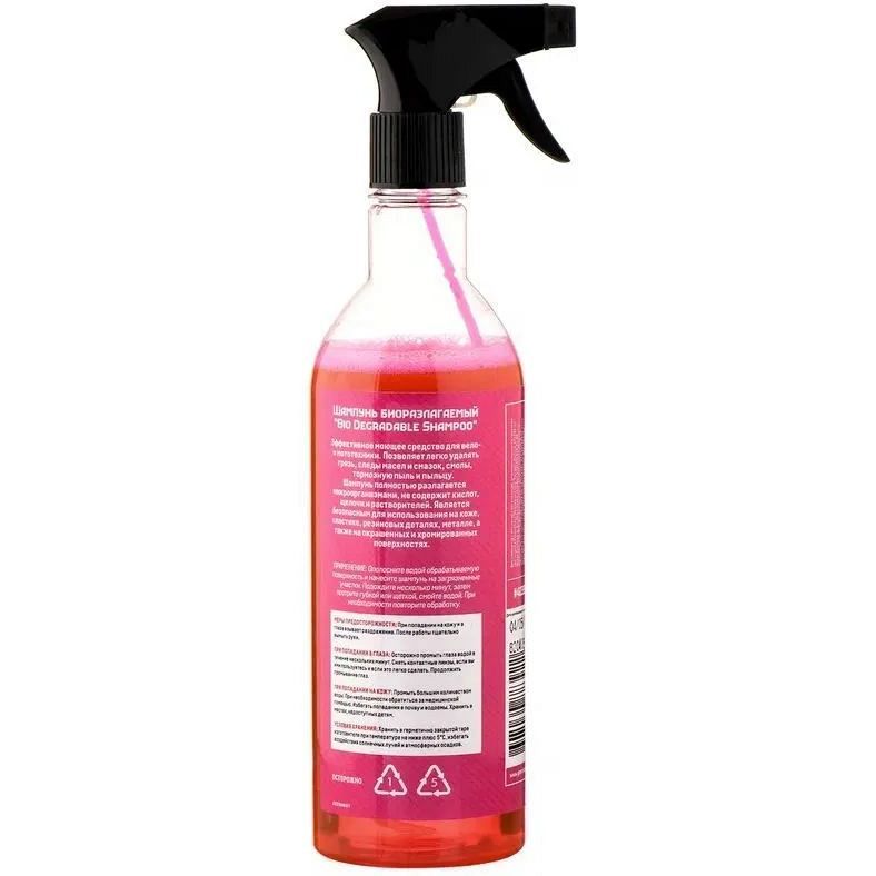 Мойка для велосипеда Grent биоразлагаемый шампунь 650 мл. – эффективное моющее средство, легко удаляющее грязь, следы масел и смазок, смолы, тормозную пыль и пыльцу. Шампунь полностью разлагается микроорганизмами, не содержит кислот, щелочи и растворителей. Является безопасным для использования на коже, пластике, резиновых деталях, металле, а также на окрашенных и хромированных поверхностях. Применение: ополосните водой обрабатываемую поверхность и нанесите шампунь на загрязненные участки. Подождите несколько минут, затем протрите губкой или щеткой, смойте водой. При необходимости повторите обработку. Важно! Не оставлять на светлых поверхностях более чем на 5 минут!