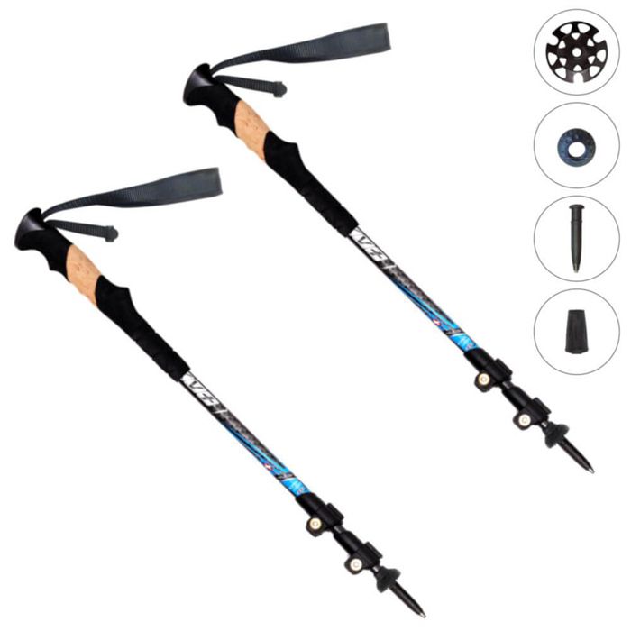 KV EXCELLENT - телескопические трехсекционные палки из карбона. Надежный механизм исключает вероятность сдвига или выпадения секций во время ходьбы. Нескользящие резиновые ручки со специальным защитным покрытием и анатомической формой руки человека удобны для опоры во время долгих походов. В комплекте с палками идут резиновые наконечники для асфальтированной поверхности, а также два комплекта колец для ходьбы грунту и снегу. Длинна 65-135 см.