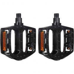 Резьба 1/2" совместима с большинством моделей велосипедов начального и среднего уровня. Поверхность педали снабжена противоскользящими элементами, а встроенные светоотражатели повышают безопасность при езде в тёмное время суток. Чёрное анодированное покрытие придаёт педалям аккуратный и универсальный внешний вид.