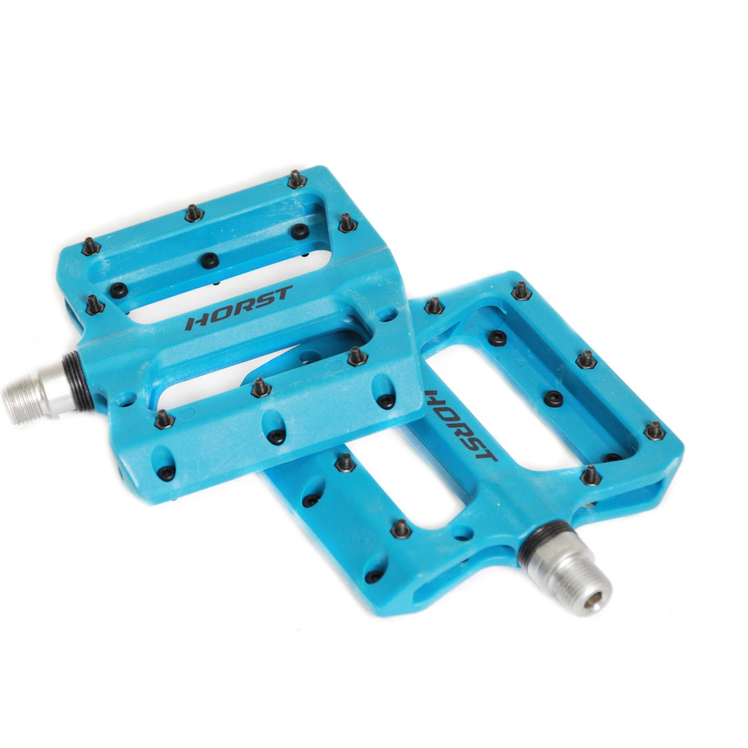 Педали Horst H601 – надёжный и функциональный выбор для агрессивного катания и повседневного использования. Корпус выполнен из прочного нейлона, устойчивого к ударам и истиранию. Увеличенная площадь платформы способствует уверенной постановке ноги, особенно при езде по пересечённой местности. Ось из хромомолибденовой стали (Cr-Mo) отличается высокой прочностью, а два герметичных промышленных подшипника обеспечивают плавный ход и защиту от пыли и влаги. Педали оснащены сменными шипами, которые повышают сцепление с обувью даже в грязных или мокрых условиях. Синий цвет выделяет модель среди стандартных решений и подчёркивает её спортивный характер.