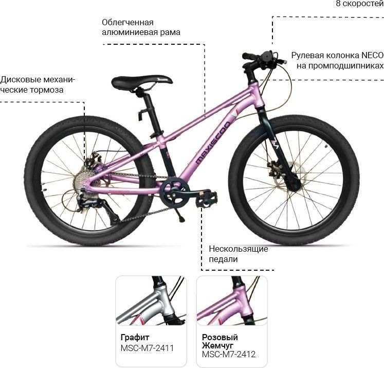 Maxiscoo 7Bike М400 24 (2025) – это не просто велосипед, а надёжный спутник для юных велосипедистов, который сочетает в себе высококачественные комплектующие, продуманный дизайн и комфорт, что делает его отличным выбором для активного отдыха и путешествий.