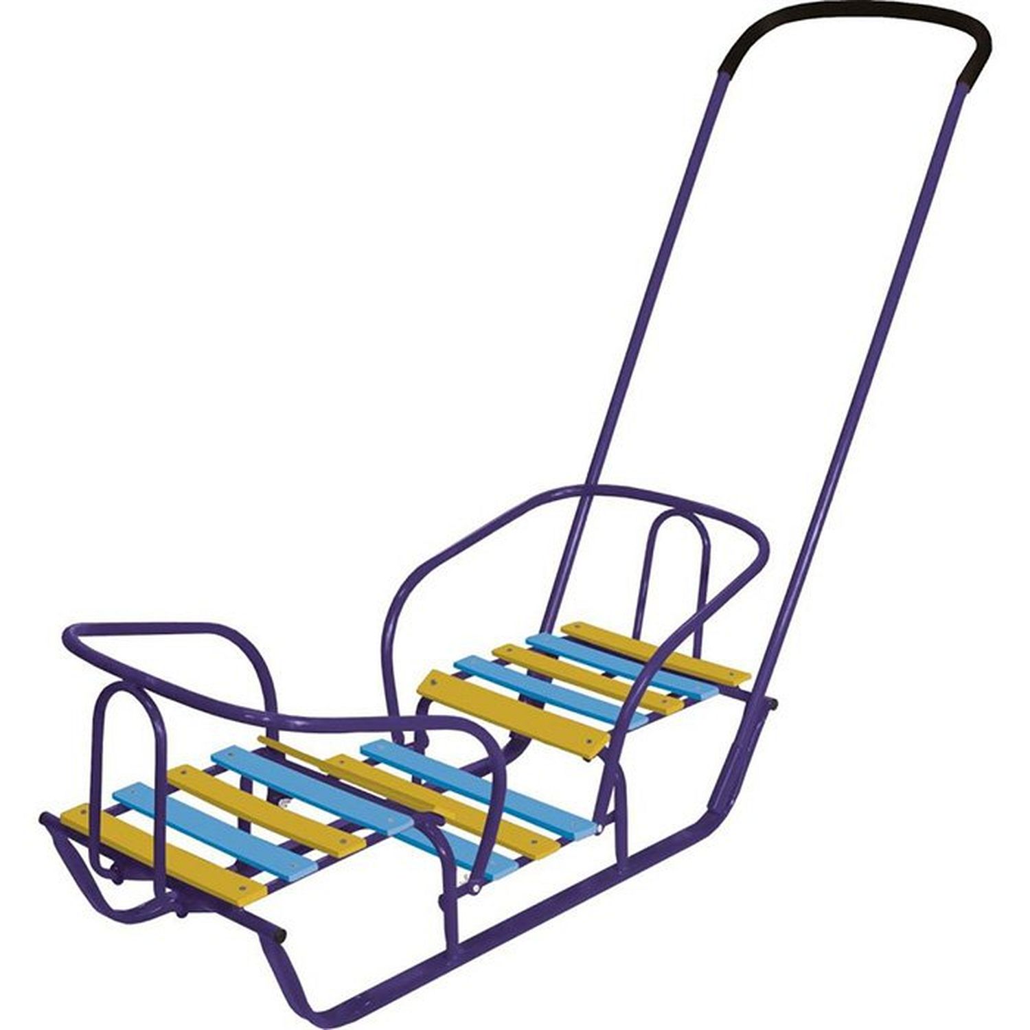 Санки-двойняшки предусмотрены для перевозки сразу двух детей! Сиденья в этих санках расположены лицом друг к другу, так что гулять двойне малышей будет вдвойне веселей. Санки-двойняшки выполнены из металла с деревянными рейками. Ручка в них съёмная, а полозья широкие и плоские для лучшего скольжения по снегу.