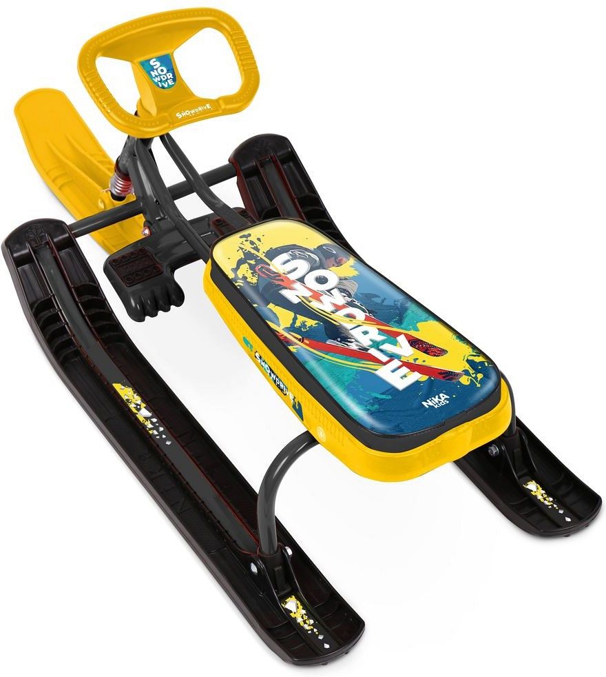 - Спортивный руль позволяет ребенку уверенно управлять снегокатом.