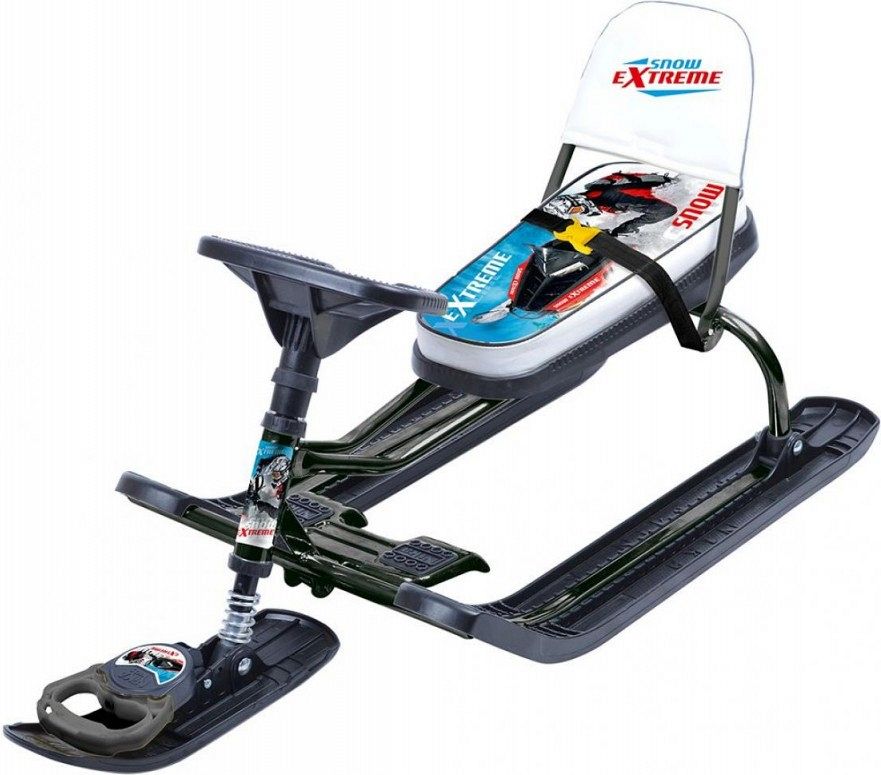 Стальная рама отличается повышенной прочностью. Мягкое сиденье и спинка обеспечивают комфорт. Лыжи сделаны из ударопрочного пластика, устойчивого к низким температурам воздуха.