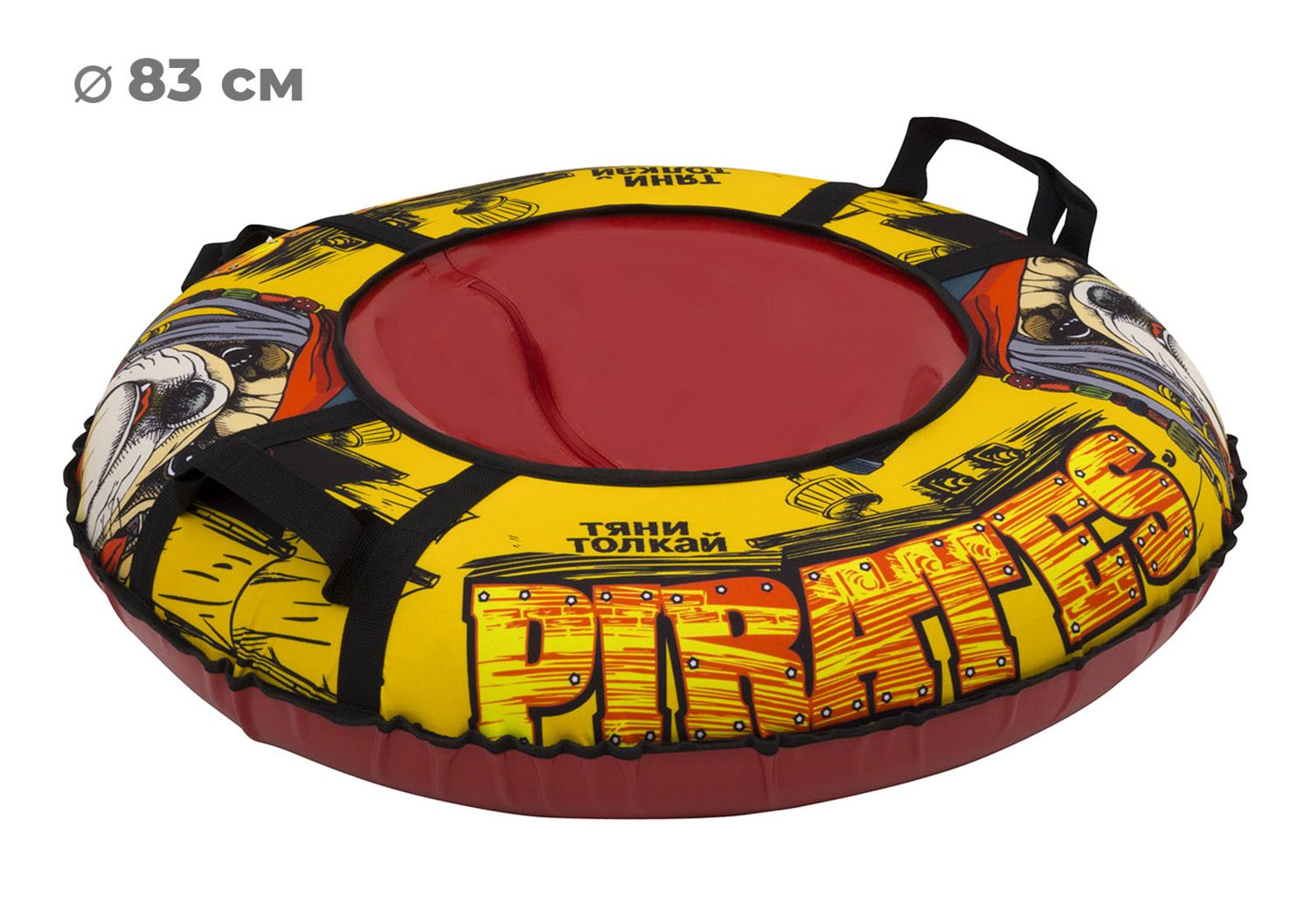 Размер тюбинга составляет 83 см, этот размер позволяет кататься на нём детям ростом до 110 см. Данный тюбинг выдерживает вес до 50 кг