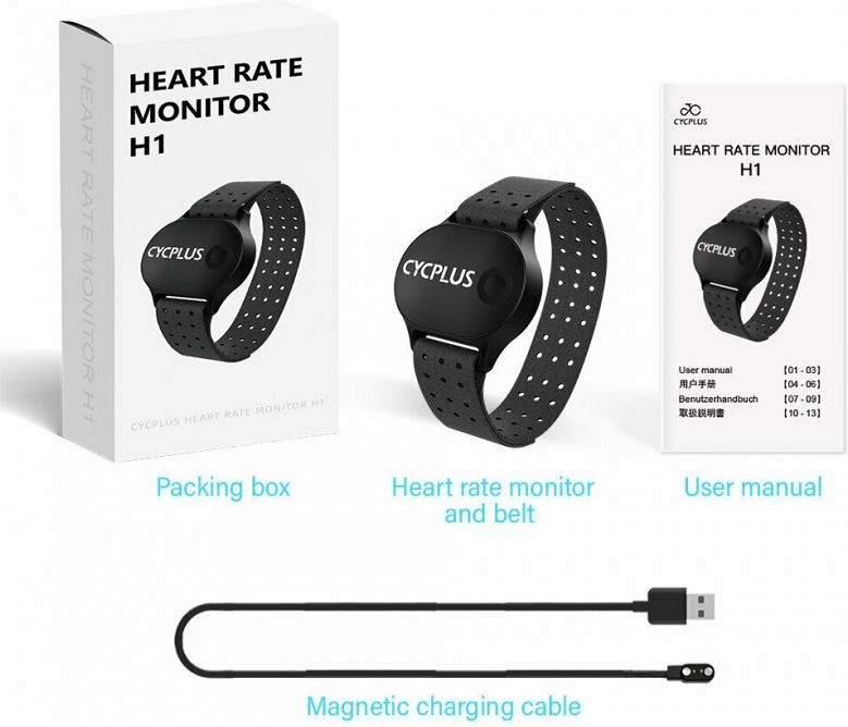Наручный пульсометр CYCPLUS поддерживает все устройства с Bluetooth Smart и ANT+. Легко подключается к смартфонам, планшетам, GPS-часам и велокомпьютерам. Вы можете синхронизировать данные с вашей любимым приложением для тренировок, например Strava. Монитор сердечного ритма H1 использует фотоэлектрическую технологию мониторинга сердечного ритма, которая получает данные о частоте сердечных сокращений по отражающимся в инфракрасном спектре волн от теле человека, обеспечивая доступ к более точным данным о частоте сердечных сокращений. Данный пульсометр имеет длительный срок службы батареи более 20 часов. Нет опасности внезапного отключения питания, поэтому вы можете носить его и заниматься всеми видами фитнеса. Монитор сердечного ритма CYCPLUS имеет водонепроницаемый корпус с защитой IP67, который подходит для ежедневных тренировок в помещении или на открытом воздухе. Вес пульсмотреа в 19 граммов - больше нет необходимости в громоздком нагрудном ремне.