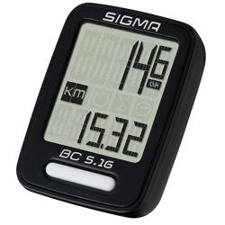 SIGMA Велокомпьютер BC 5.16, NSI05160 - простой и понятный велокомпьютер с 5 функциями. На дисплее отображаются одновременно два показателя. Компьютер позволяет отслеживать текущую скорость, пройденное расстояние, общий пробег за все время использования,
