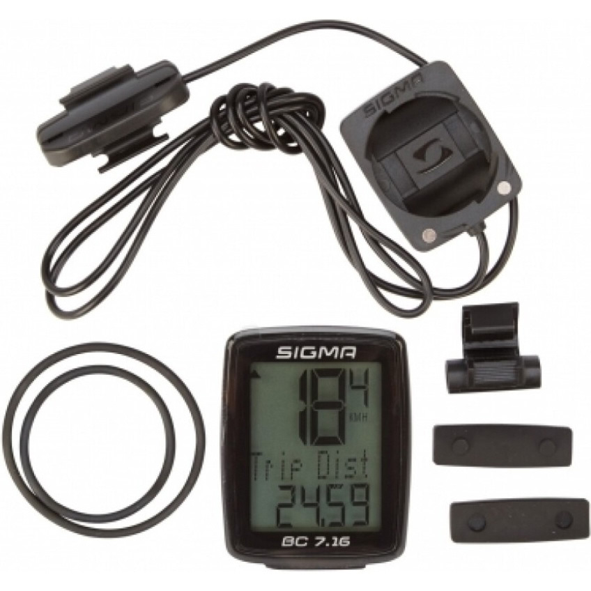 Велокомпьютер Sigma BC 7.16 – практичный и функциональный прибор для тех, кто хочет контролировать ключевые параметры поездки без лишней сложности. Это проводная модель от немецкого бренда Sigma, отличающаяся надёжностью, чётким дисплеем и стабильной работой в любых условиях.