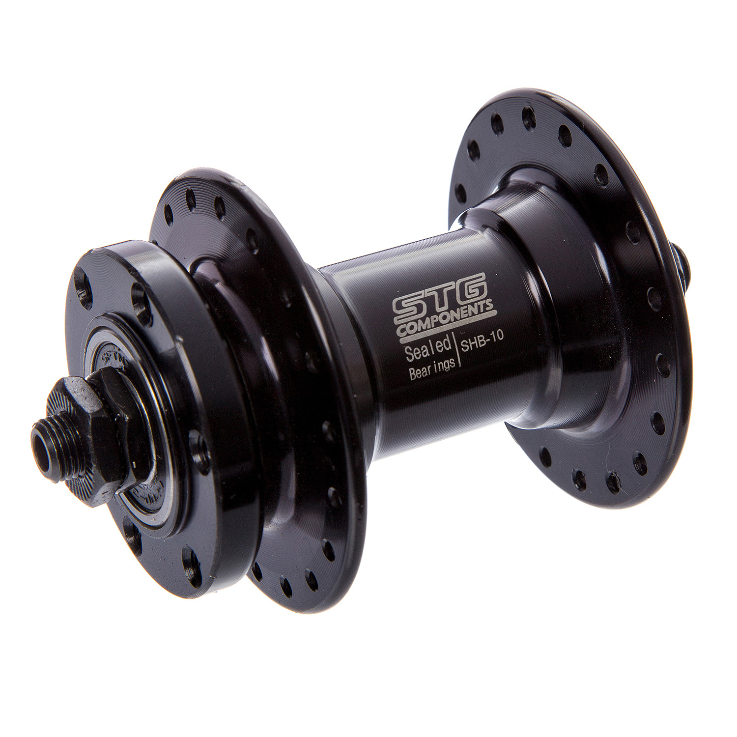Втулка STG B10 передняя под диск на 6 болтов. 36 отверстий под спицы. Пром. Подшипники на эксцентрике. Материал алюминий.